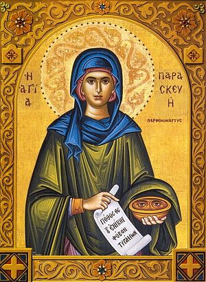 Святая мученица Параскева, нареченная Пятницею, жила в III веке в Иконии в богатой и благочестивой семье. Родители святой особенно почитали день страданий Господних - пятницу, поэтому и назвали дочь, родившуюся в этот день, Параскевою, что в переводе с греческого и означает - Пятница. Всем сердцем возлюбила юная Параскева чистоту и высокую нравственность девственной жизни и дала обет безбрачия. Она захотела посвятить всю свою жизнь Богу и просвещению язычников светом веры Христовой. На этом праведном пути суждено было Параскеве, носившей в имени своем память о дне великих Страстей Иисусовых, приобщиться и в жизни Страстям Христовым через телесные муки. За исповедание православной веры озлобившиеся язычники схватили ее и привели к городскому властителю. Здесь ей предложили принести богомерзкую жертву языческому идолу. С твердым сердцем, уповая на Бога, отвергла преподобная это предложение. За это она претерпела великие мучения: привязав ее к дереву, мучители терзали ее чистое тело железными гвоздями, а затем, устав от мучительства, всю изъязвленную до костей, бросили в темницу. Но Бог не оставил святую страдалицу и чудесно исцелил ее истерзанное тело. Не вразумившись этим Божественным знамением, палачи продолжали мучить Параскеву и, наконец, отсекли ей голову.